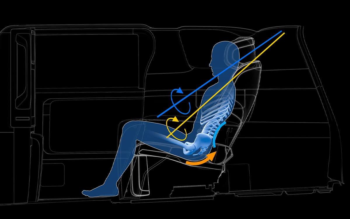 Hai ghế thương gia độc lập ở phía sau được phát triển theo triết lý “Rear Comfort Concept” – chú trọng đến tư thế tự nhiên của cơ thể. Ghế có chức năng massage đa điểm, sưởi và làm mát, cùng đệm tựa chân mở rộng, giúp người ngồi duy trì trạng thái thoải mái nhất trong suốt hành trình.