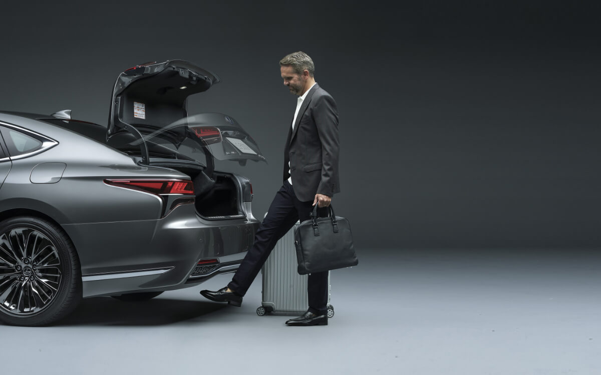 Cốp chỉnh điện mở bằng cảm biến đá chân, cho phép đóng/mở cốp khi tay đang mang đồ mà không cần chạm.