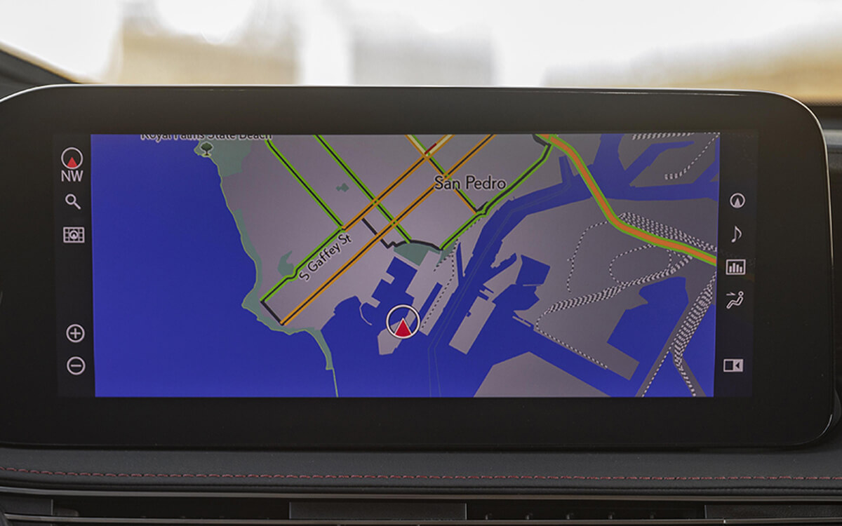 Màn hình trung tâm lớn hiển thị định vị, điều hòa và thông tin xe, có thể tùy chỉnh giao diện theo người dùng.
