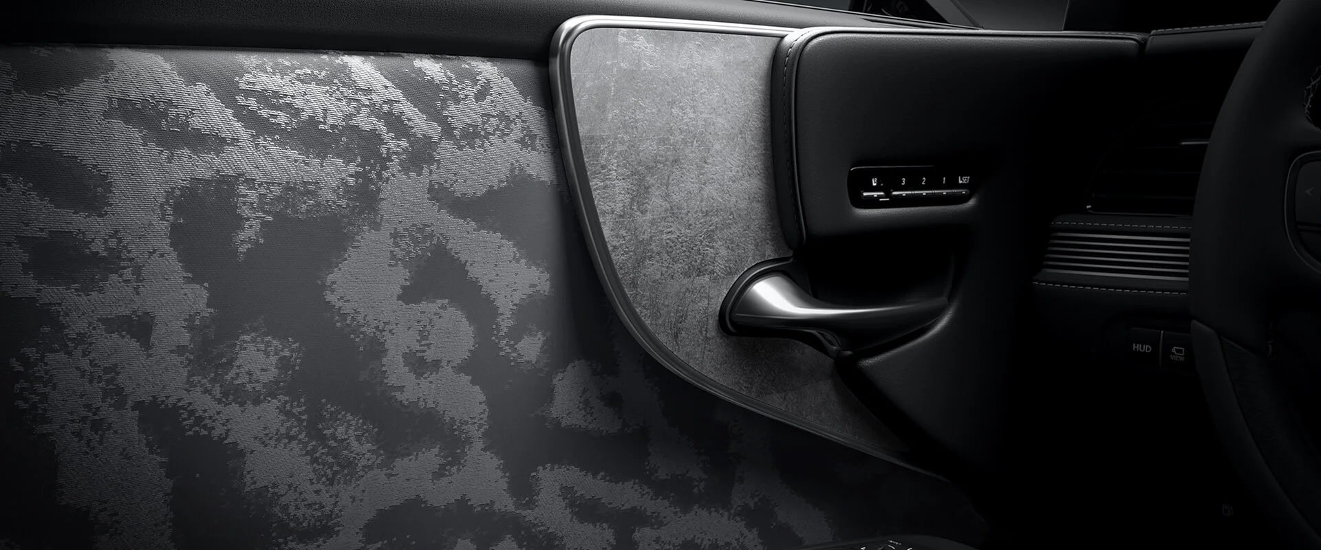 Chi tiết kính Kiriko thủ công được đặt trong khoang nội thất, thể hiện tinh hoa truyền thống kết hợp với thiết kế hiện đại.