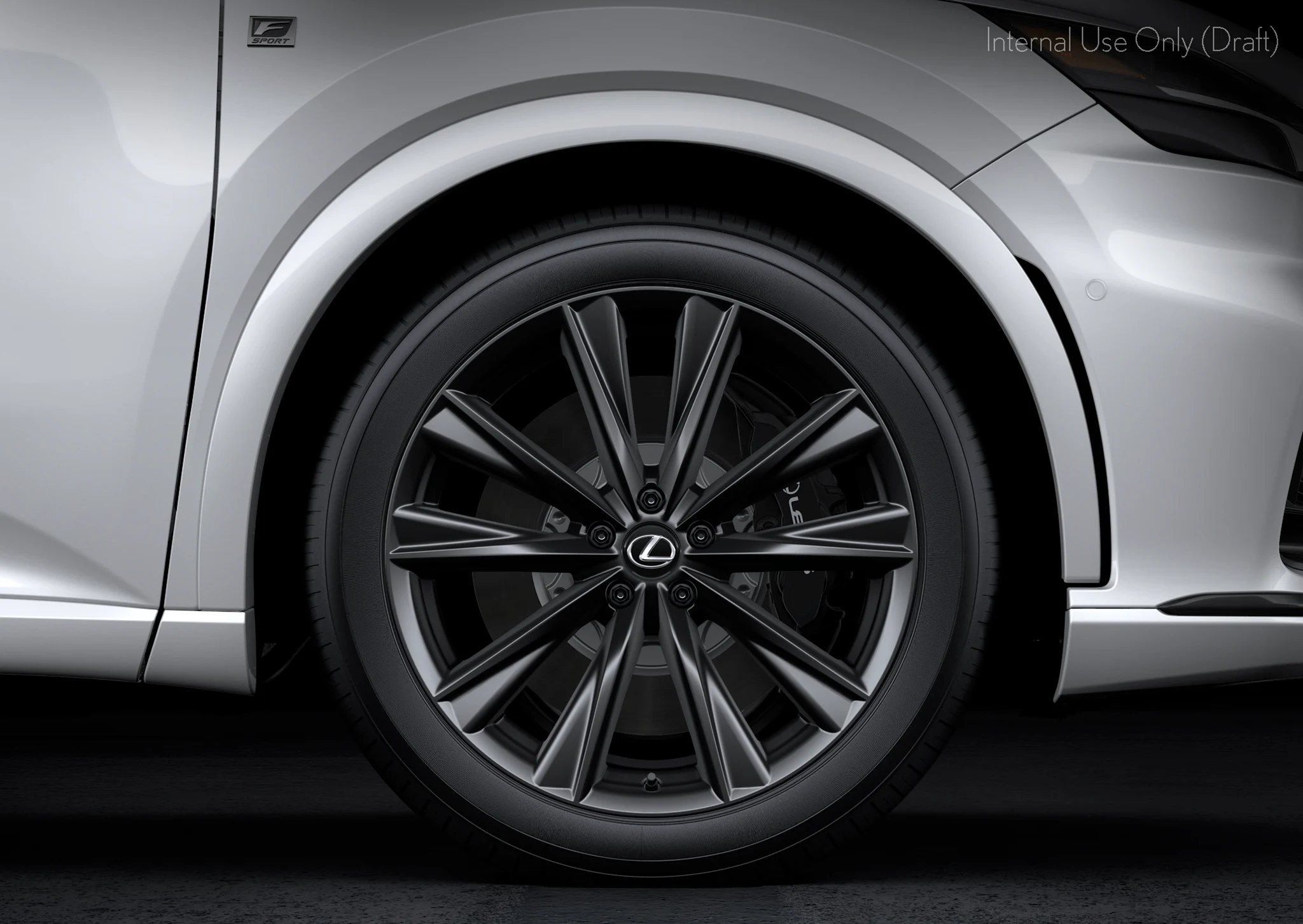 Bộ bánh xe hợp kim nhôm 21 inch mang lại vẻ ngoài mạnh mẽ, thể thao và sắc sảo cho RX.